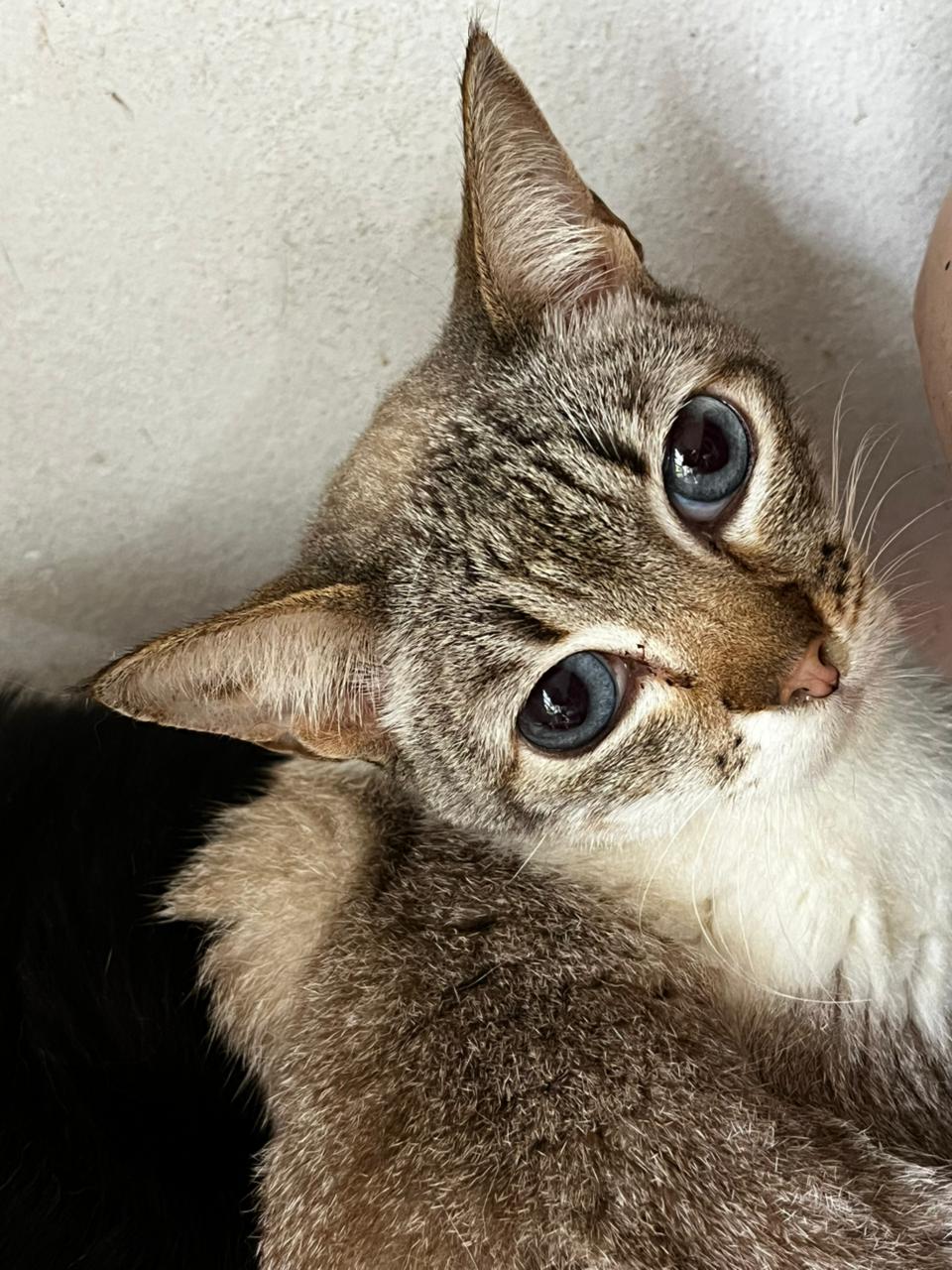 Graças ao Projeto Amora fui resgatada a tempo. Caso contrário, eu teria morrido esmagada pelas máquinas que derrubaram tudo ou estaria sofrendo nas ruas em busca de comida e abrigo. Como fui resgatada nesse momento dramático, as tias do abrigo não sabem muito mais do meu passado ou da minha idade, mas sou uma gatinho adulta e com muito amor para dar.