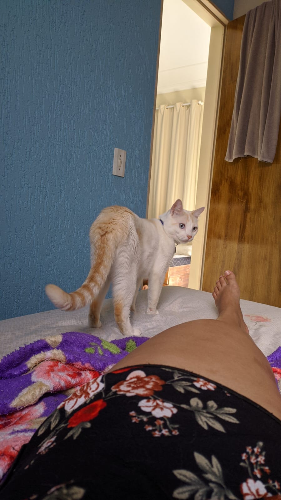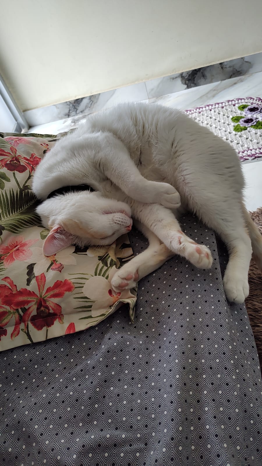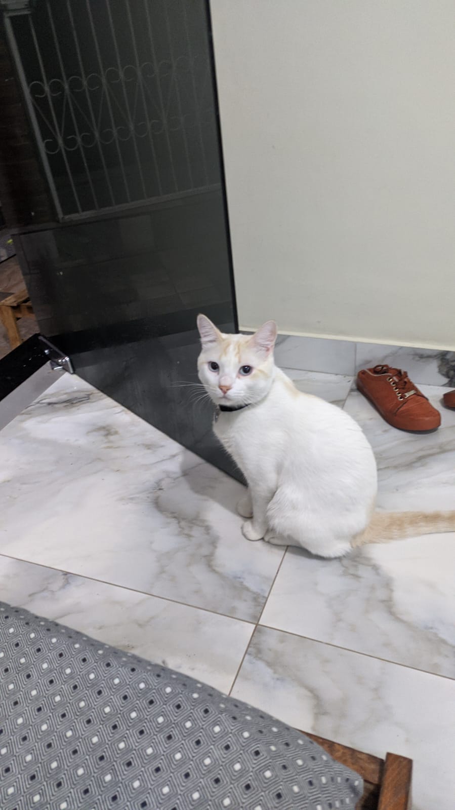 GATO BRANCO COM ALGUMAS MANCHAS AMARELAS
