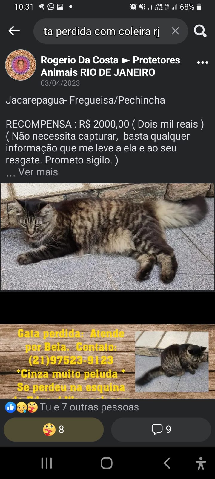 Foi no motor do carro até posto de gasolina próximo, na Av Geremario Dantas. Foi vista por último na garagem de prédio na estrada do Capenha 1147, e de lá pra não mais. Procuro todos os dias pela região, porém não posso garantir que tenha sido ela mesma que foi vista por lá, pode estar em qualquer outro lugar da região de jacarepagua/pechincha - Freguesia.