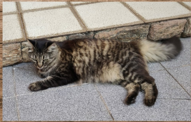 Mto peluda, tem coleira rosa com etiqueta com telefone. É mansa, mas pode estar assustada, porém se a pessoa tiver tato com gatos, só oferecer alimento e deixar ela a vontade que aos poucos ela interesse e deixa até fazer carinho. Coleira fica embaixo do pelo, telefone está na coleira, te em que rodear pq as vezes fica embaixo do pescoço.