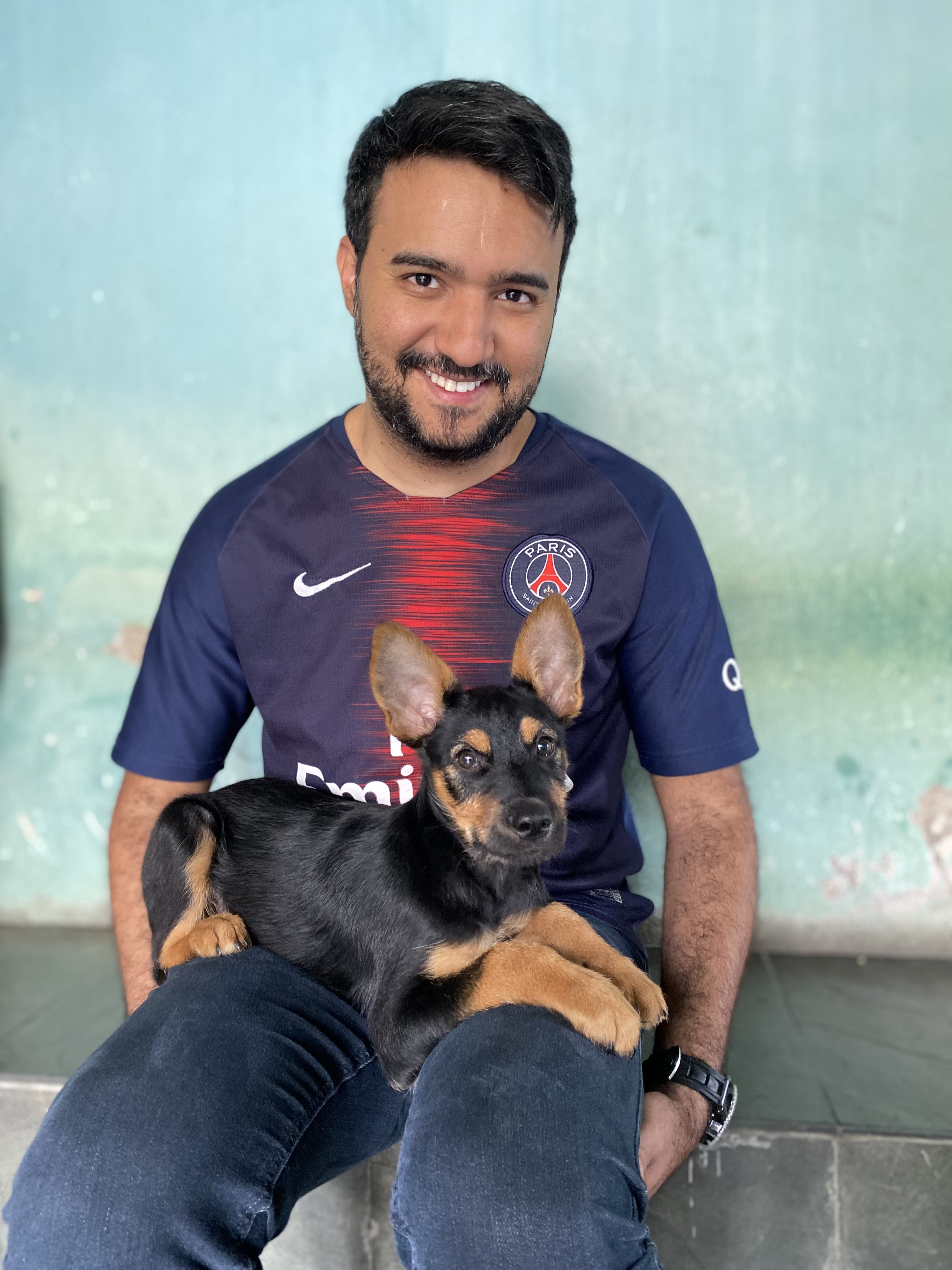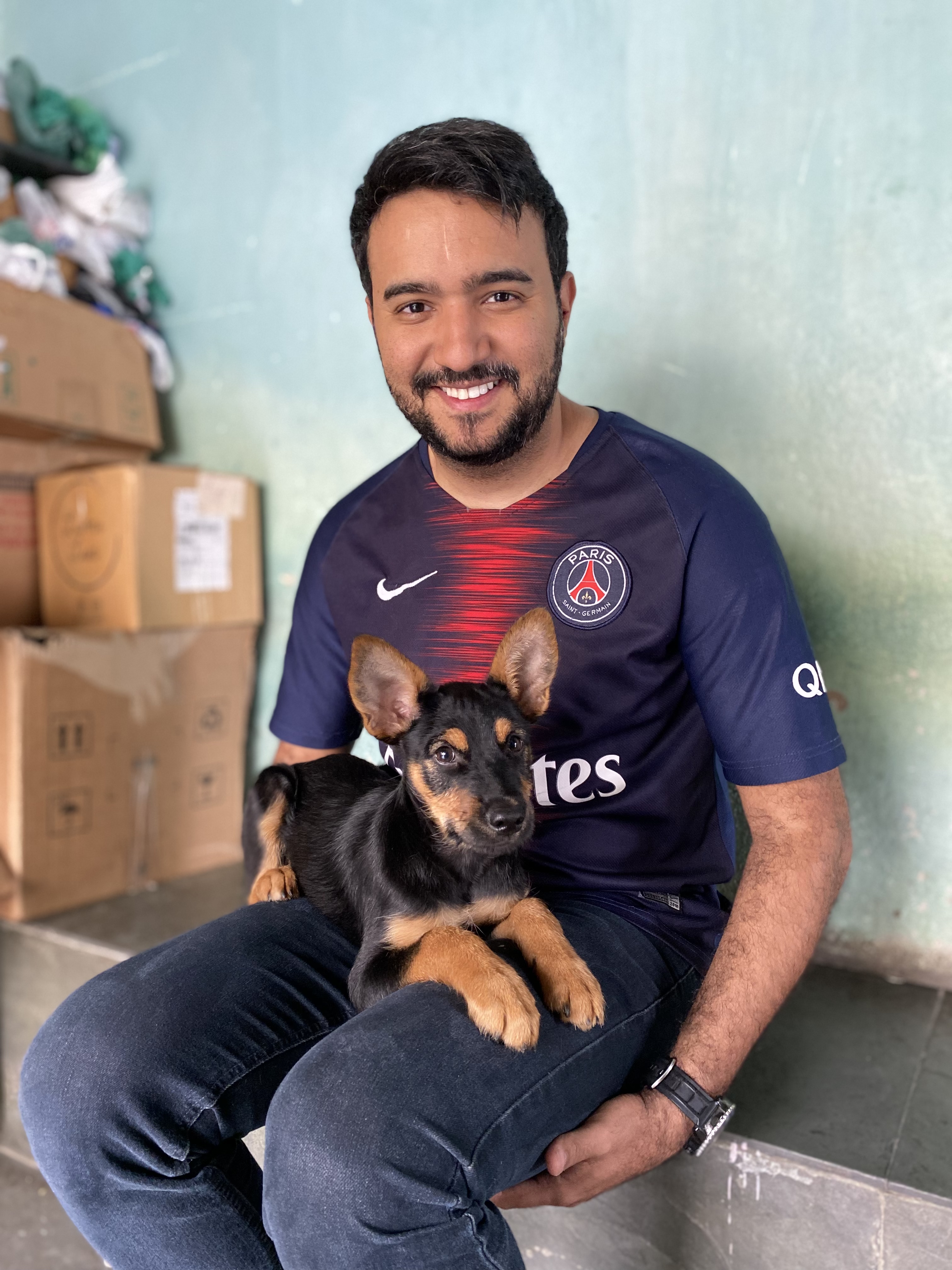 No mesmo dia que ele fugiu, rodamos de carro por umas 2h. Mas o Bruce adora correr, quer brincar com todo mundo, com todo cachorro que aparecer.