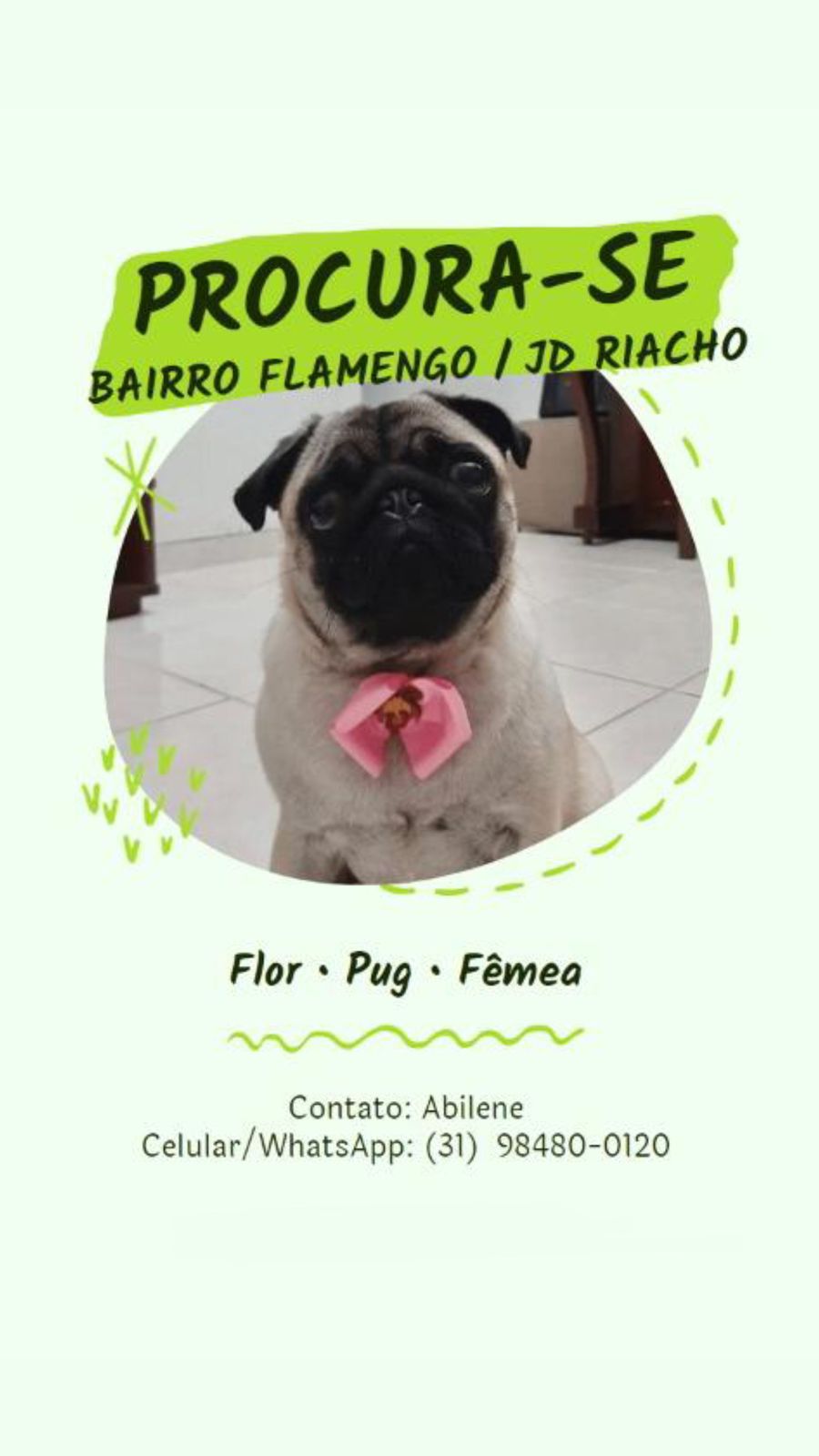 Sobre a Flor Pug fêmea desaparecida no bairro Flamengo em Contagem - MG dia 12/03, domingo a noite. Vimos pela camera que ela se deslocou rumo a Rua Camilo Schiara no bairro Flamengo.