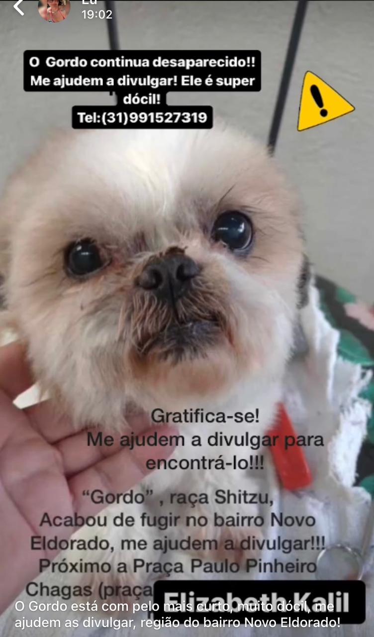 Sobre o Gordo Cão dócil, amigo, atende pelo nome de Gordo. Fugiu da rua Tinguassu no Novo Eldorado Contagem. Pertencia a uma paciente autista que está em crise pela ausência do Gordo. Por favor me ajudem a devolvê-lo pra sua casa 9.8477.2222 gratifico!