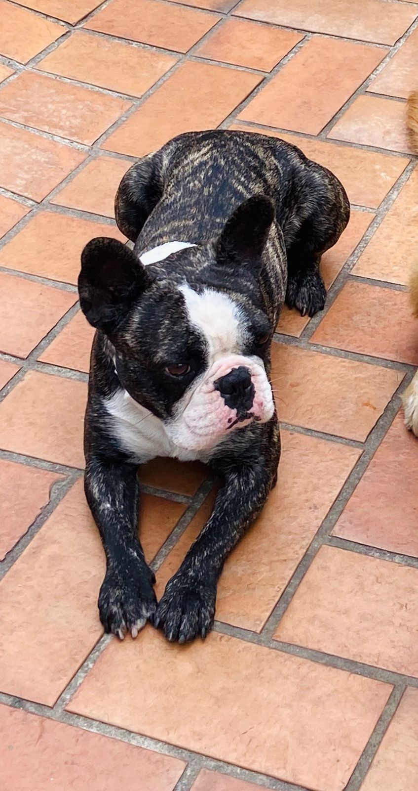 Se perdeu por volta de 1h da manhã, da madrugada de quarta 05/07 pra quinta 06/07. Está sem nenhum acessório, nem roupa, nem identificação. Foi visto por volta de 3:30 da manhã na Praça da Nino pelo vigia do bairro, logo abaixo do endereço de casa. Estava muito assustado e ele não conseguiu pegar.