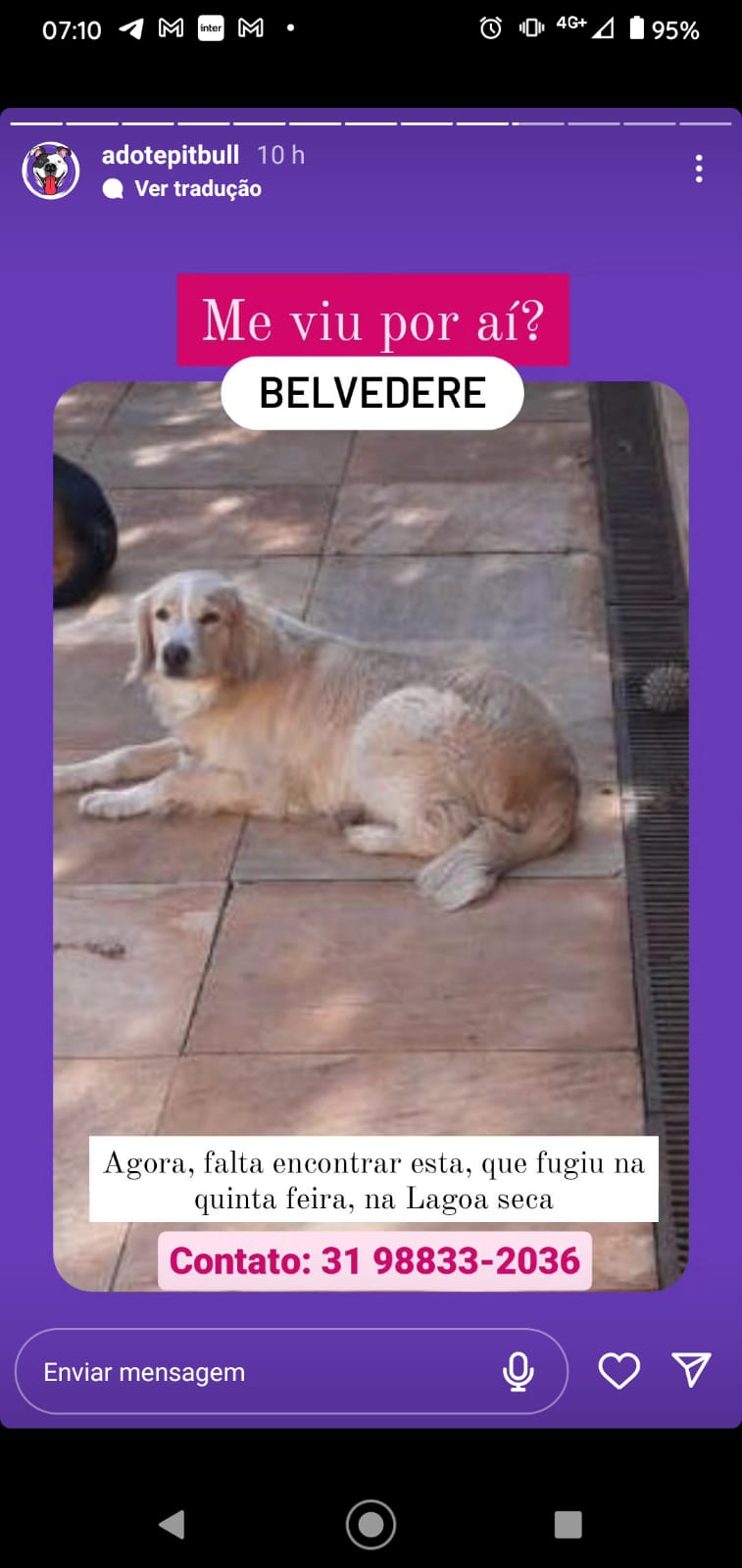 Muito assustada ,tem medo das pessoas. Fugiu pq passou grupo de ciclistas e ela assustou.