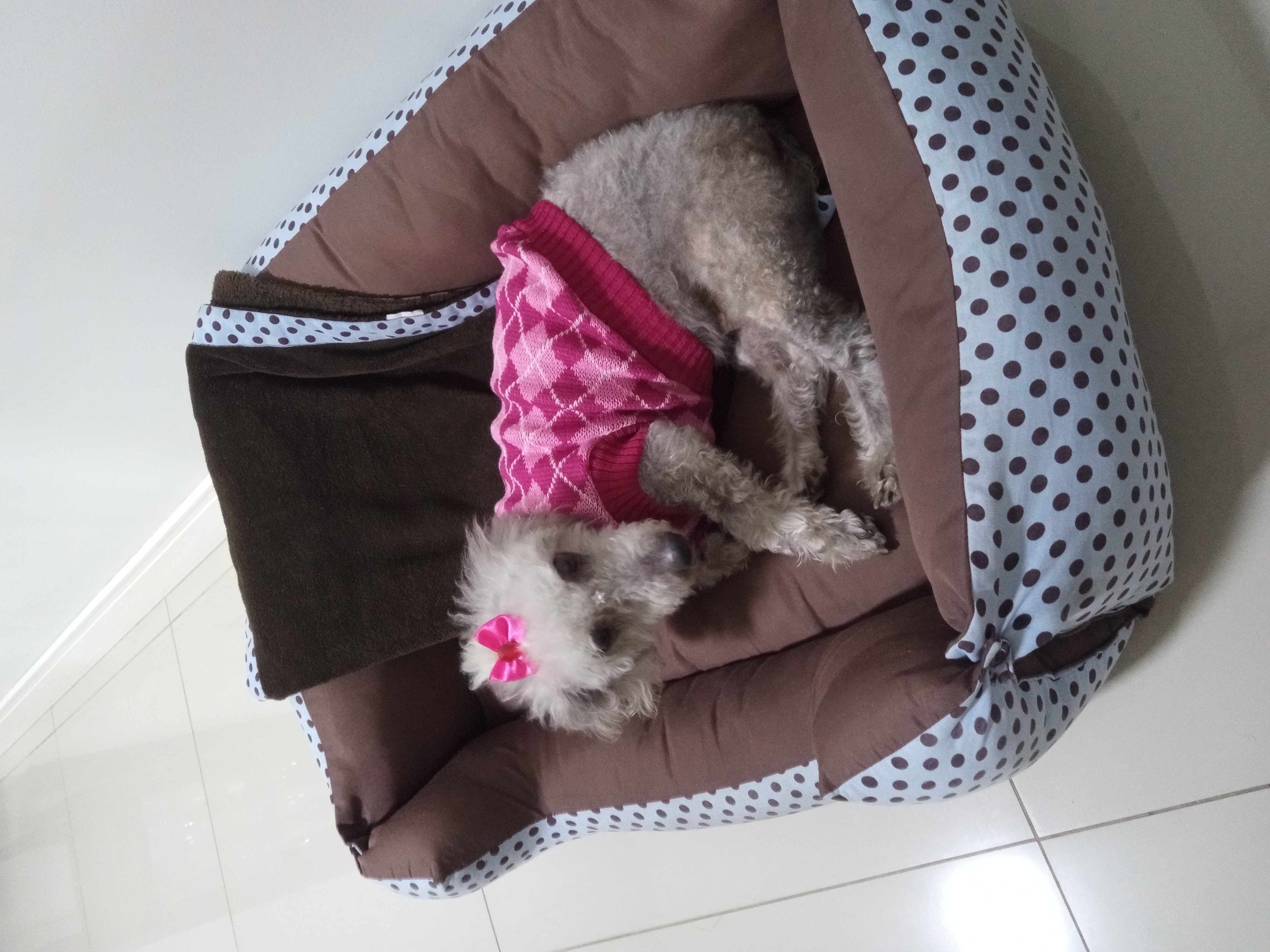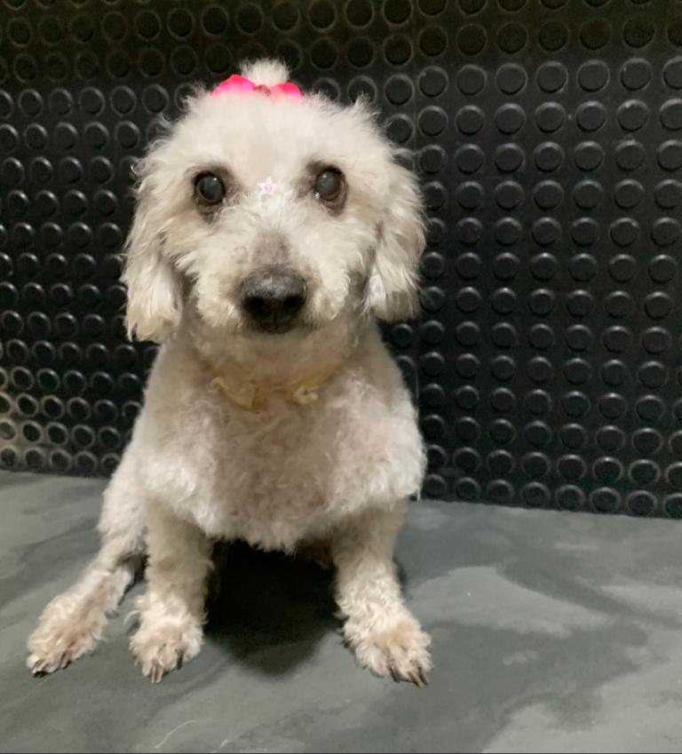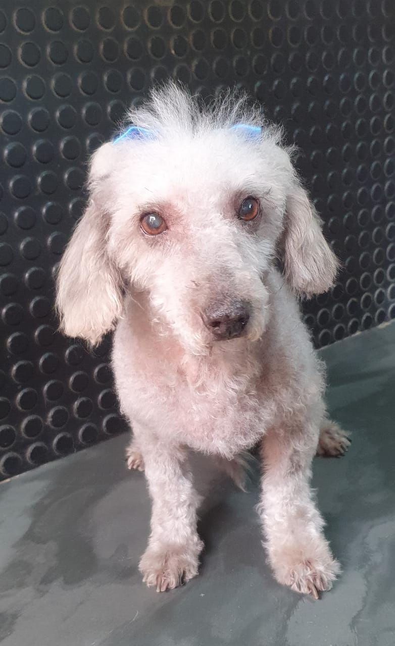 Sobre a Lady Sou a Lady, uma SRD que lembra muito um poodle, cor clara (um pouco acinzentada). Já sou uma idosinha (entre 8 e 10 anos). Se reparar bem, tenho um início de catarata nos olhos. Antes da minha mamãe me resgatar, eu vivia nas ruas e provavelmente fui muito maltratada, por isso tenho medo quando encostam em mim bruscamente. Mas amo um carinho, cafuné na cabeça.