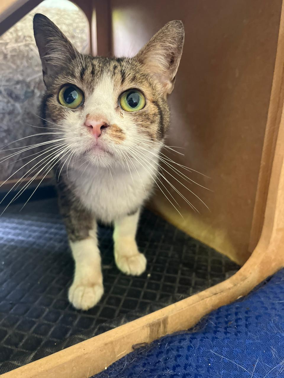 Maeve • Projeto Amora Olá, eu sou a Maeve. Até o final de 2025 eu tinha um lar e um humano que cuidava de mim com carinho. Mas ele ficou gravemente doente, com um câncer agressivo, e infelizmente faleceu em dezembro. Com a partida dele, tudo desmoronou. A família não pôde — ou não quis — cuidar de nós, e vários animais acabaram ficando sem rumo. Foi assim que cheguei ao abrigo, junto com outros 14 gatinhos e dois cãezinhos.