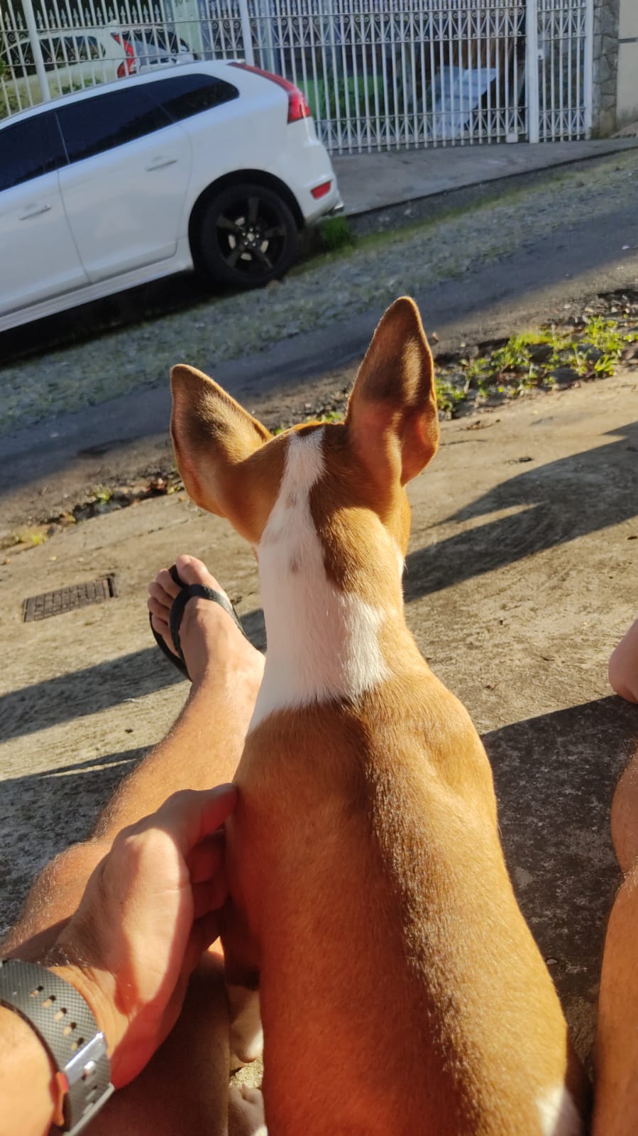 Tutores: João filho e Marcela Ainda filhote É bem estovadinha, porte médio, usa coleira marrom claro possui medalhinha com nome e QRcode. Tem uma pequena falha no pêlo lado esquerdo.
