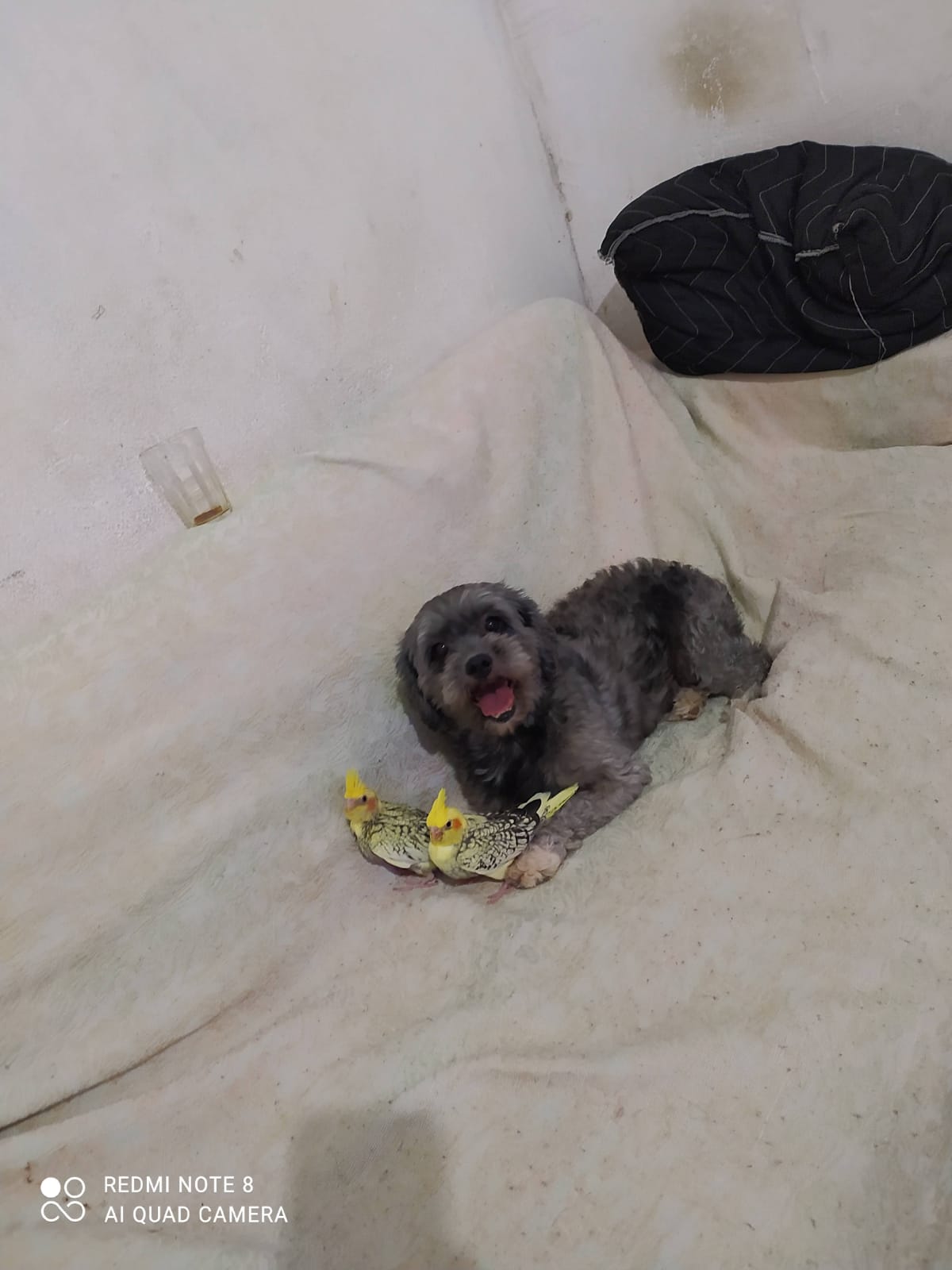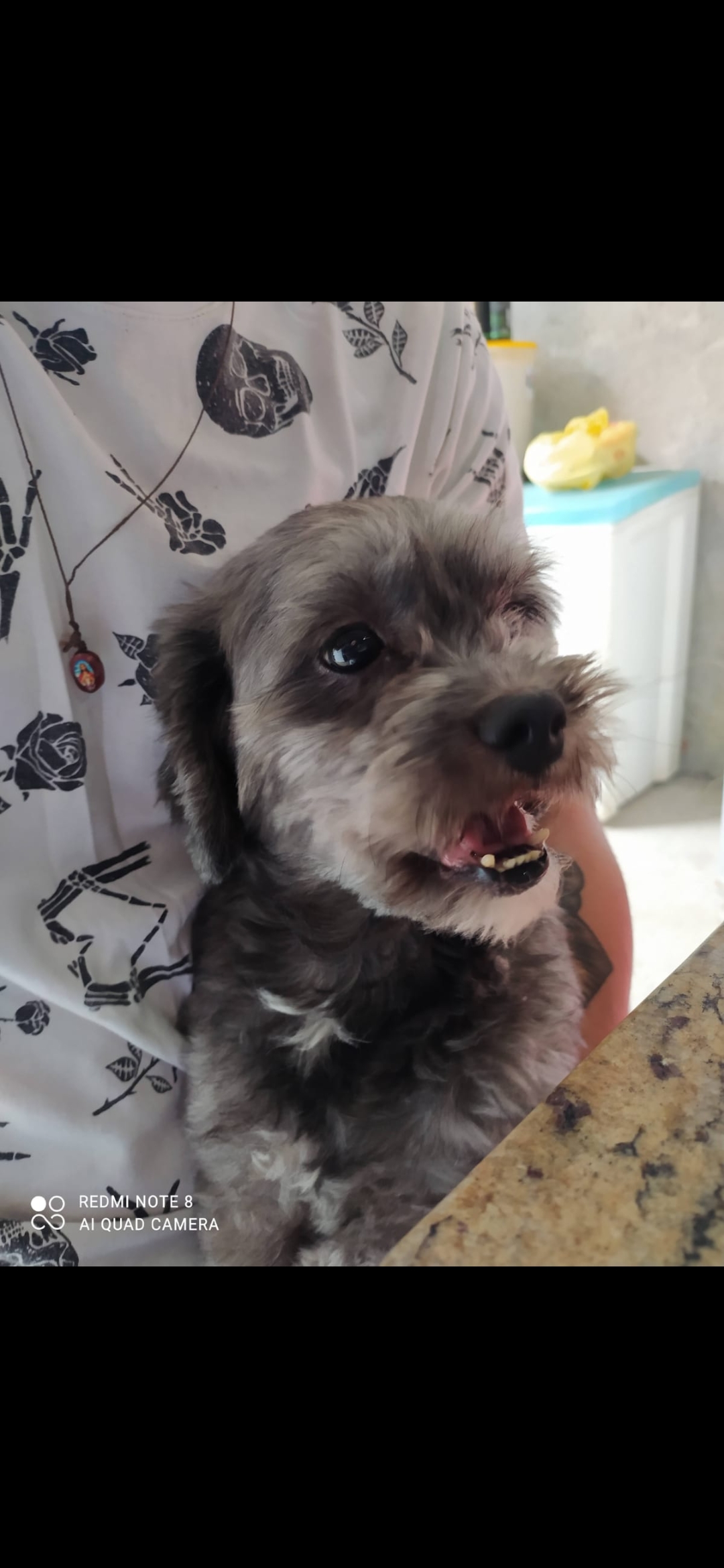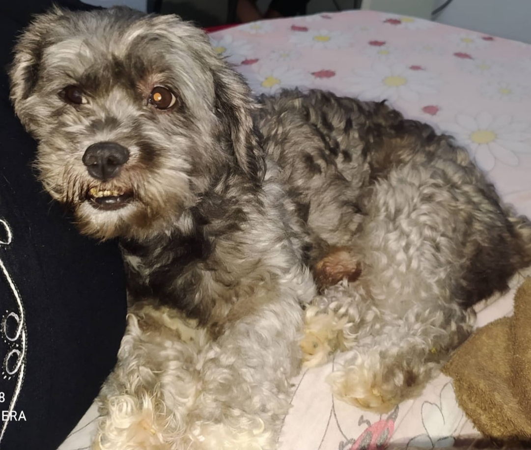 O Maylon estava com uma gravatinha de patinhas e bem peludo