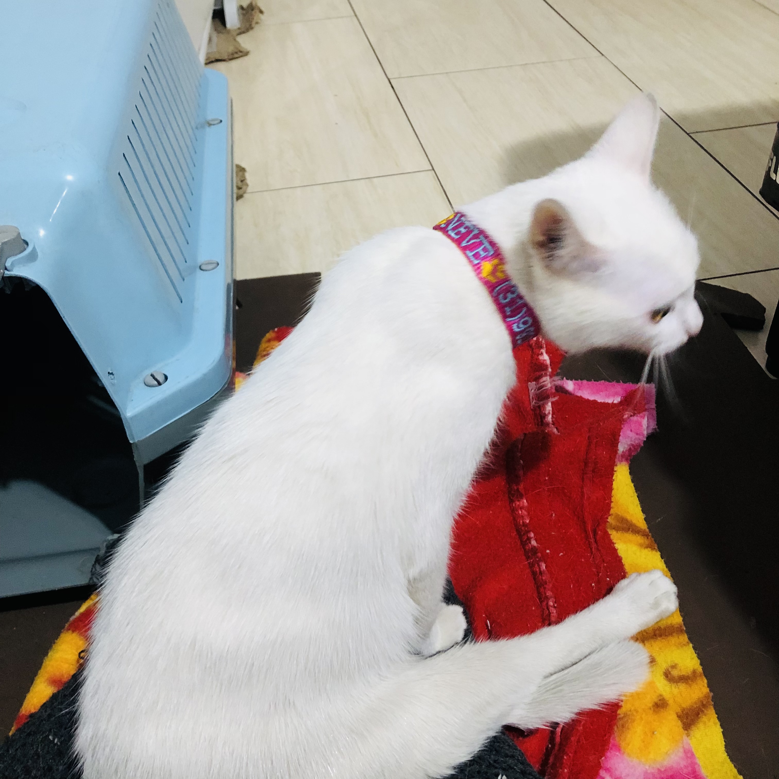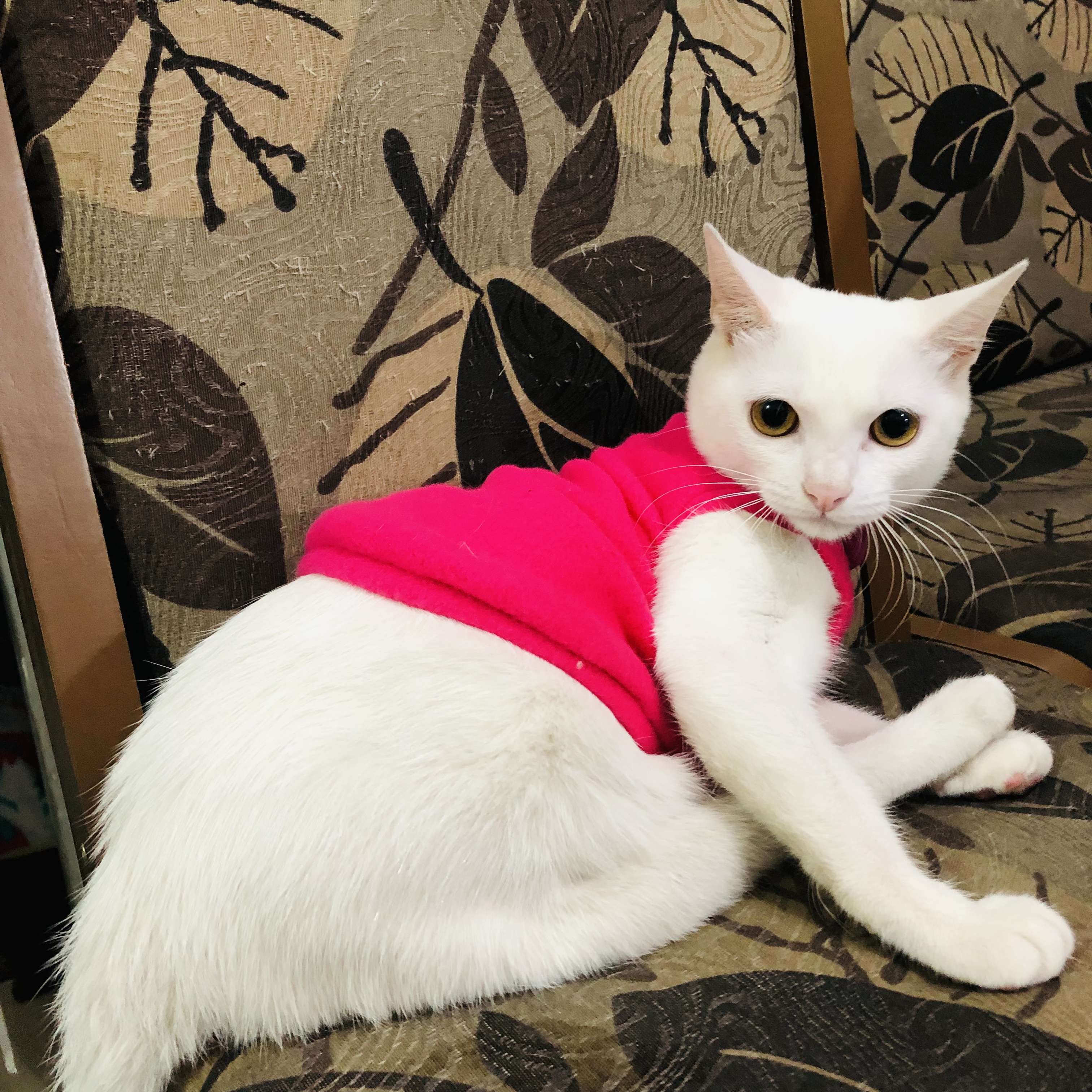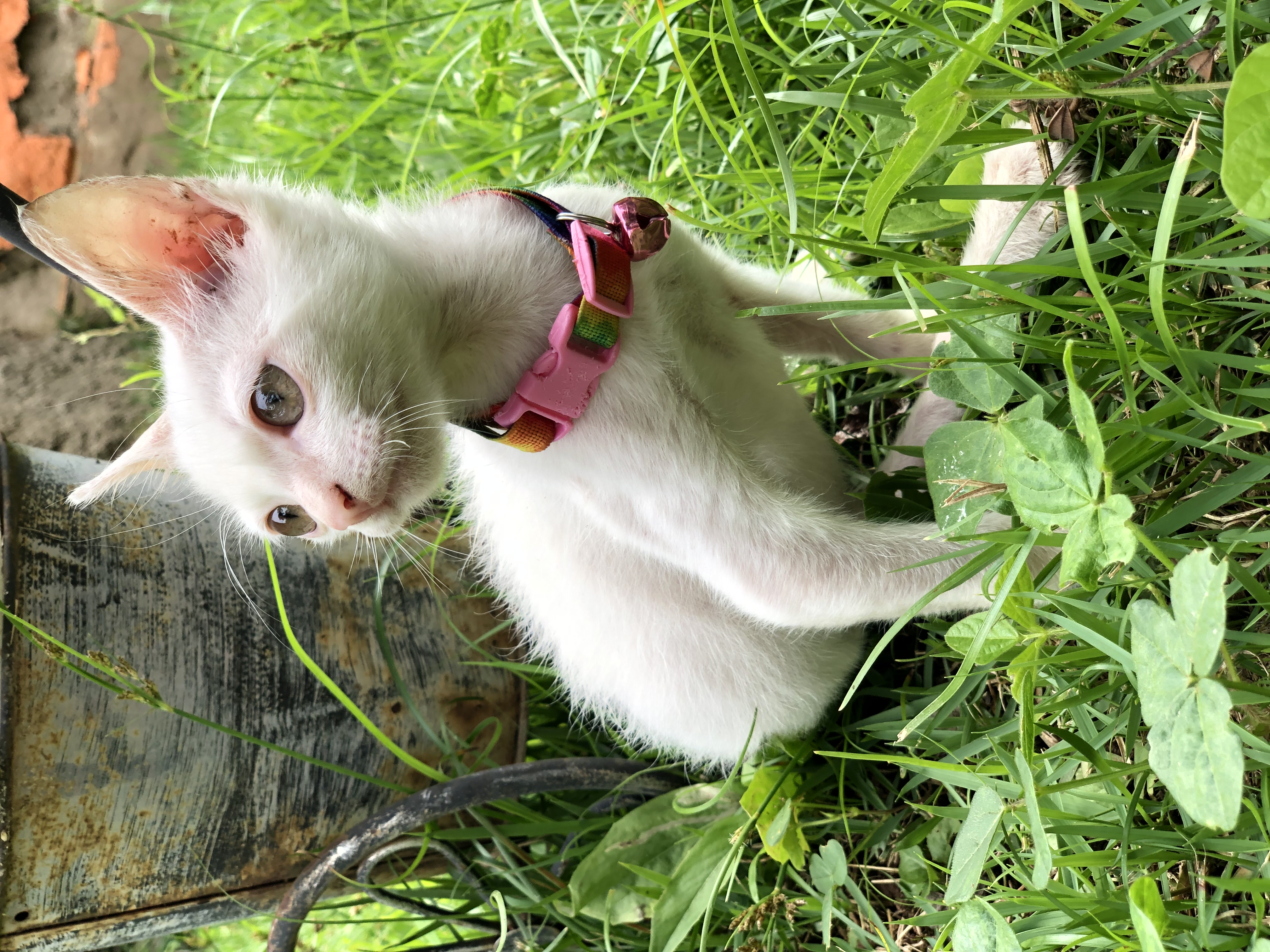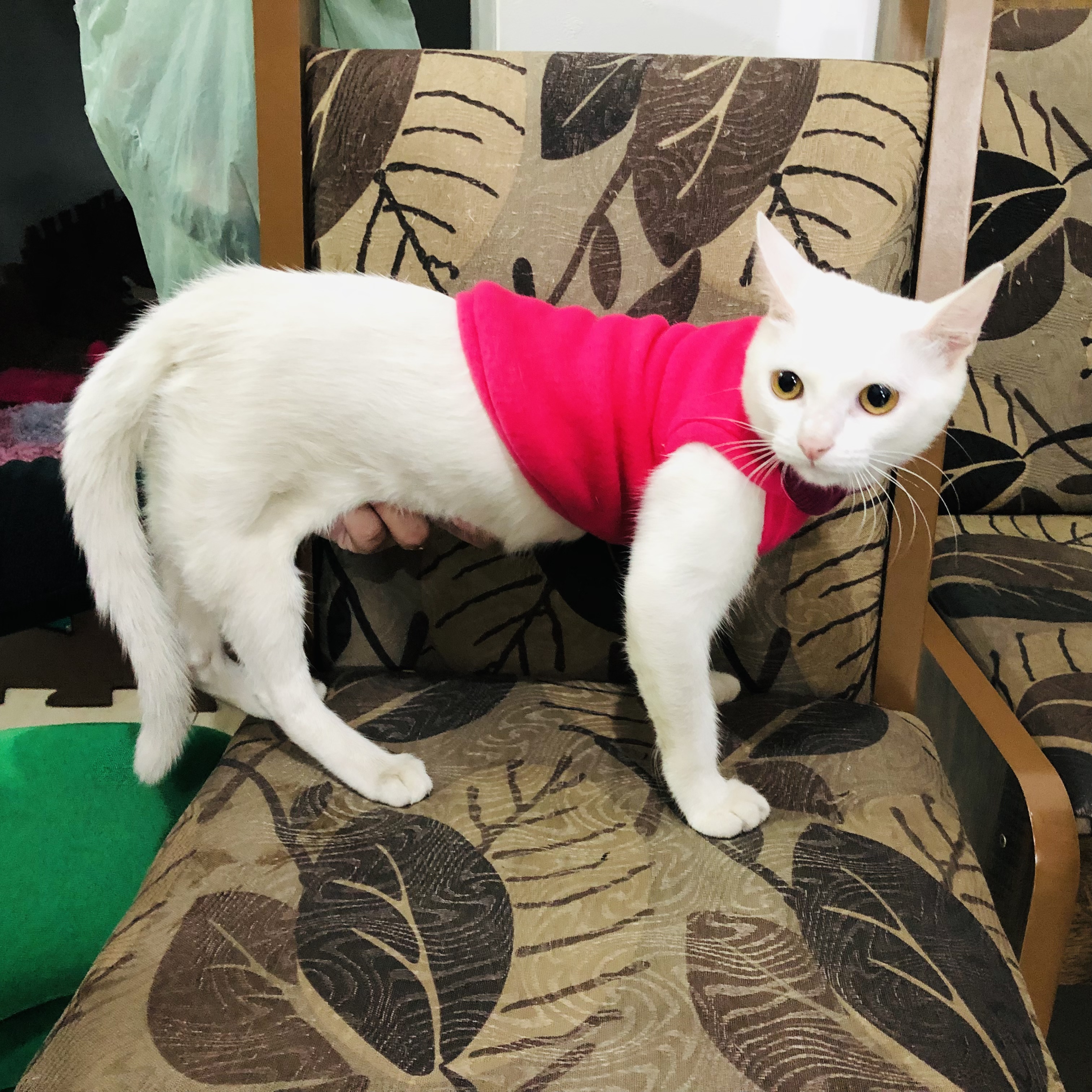 Gatinha TODA branquinha com dificuldade de locomoção nas patas traseiras (não anda) Olhos cor de mel.