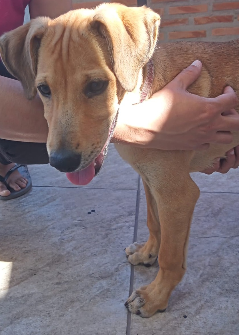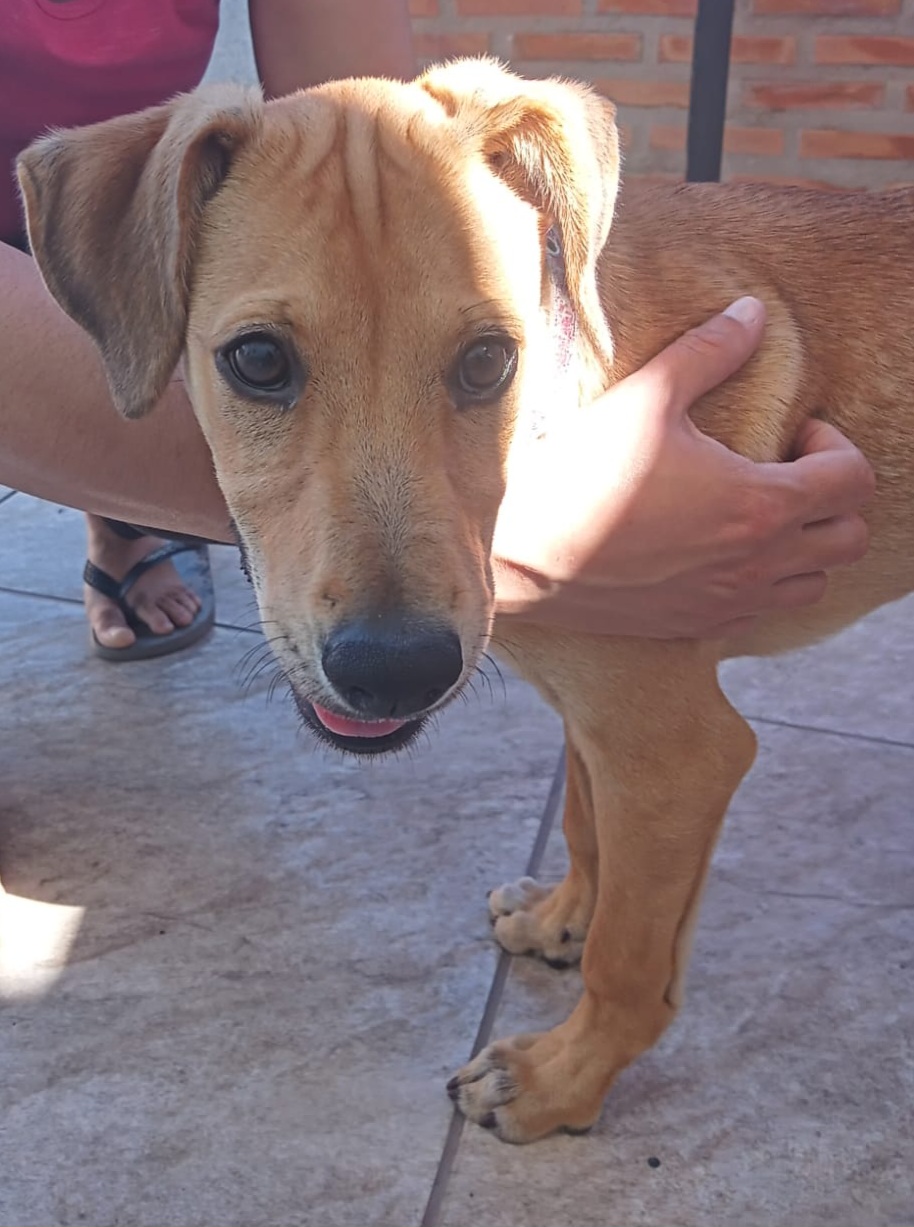ADOÇÃO URGENTE BH Essa Caramela, foi retirada de maus tratos nesse domingo dia 21/05, estava apanhando com cadeiras, pauladas, etc. É uma bebezona em torno de 3 meses e muito carinhosa, provavelmente ficará de porte medio.