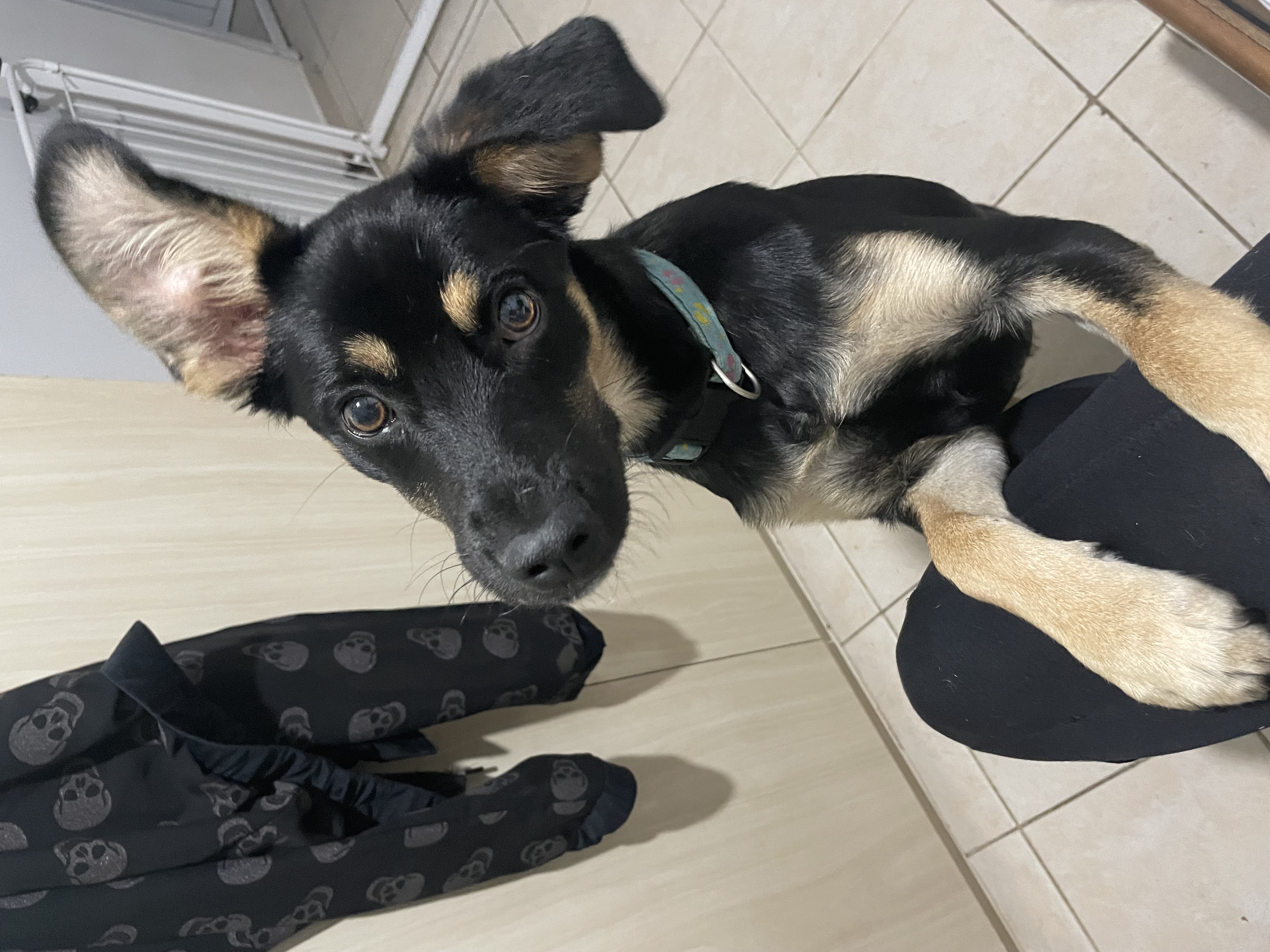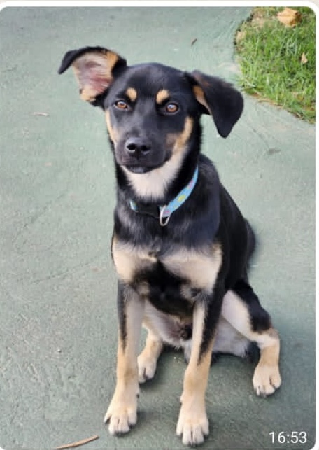 Eu estava indo para o carro e esse cão apareceu com a coleira que está na foto