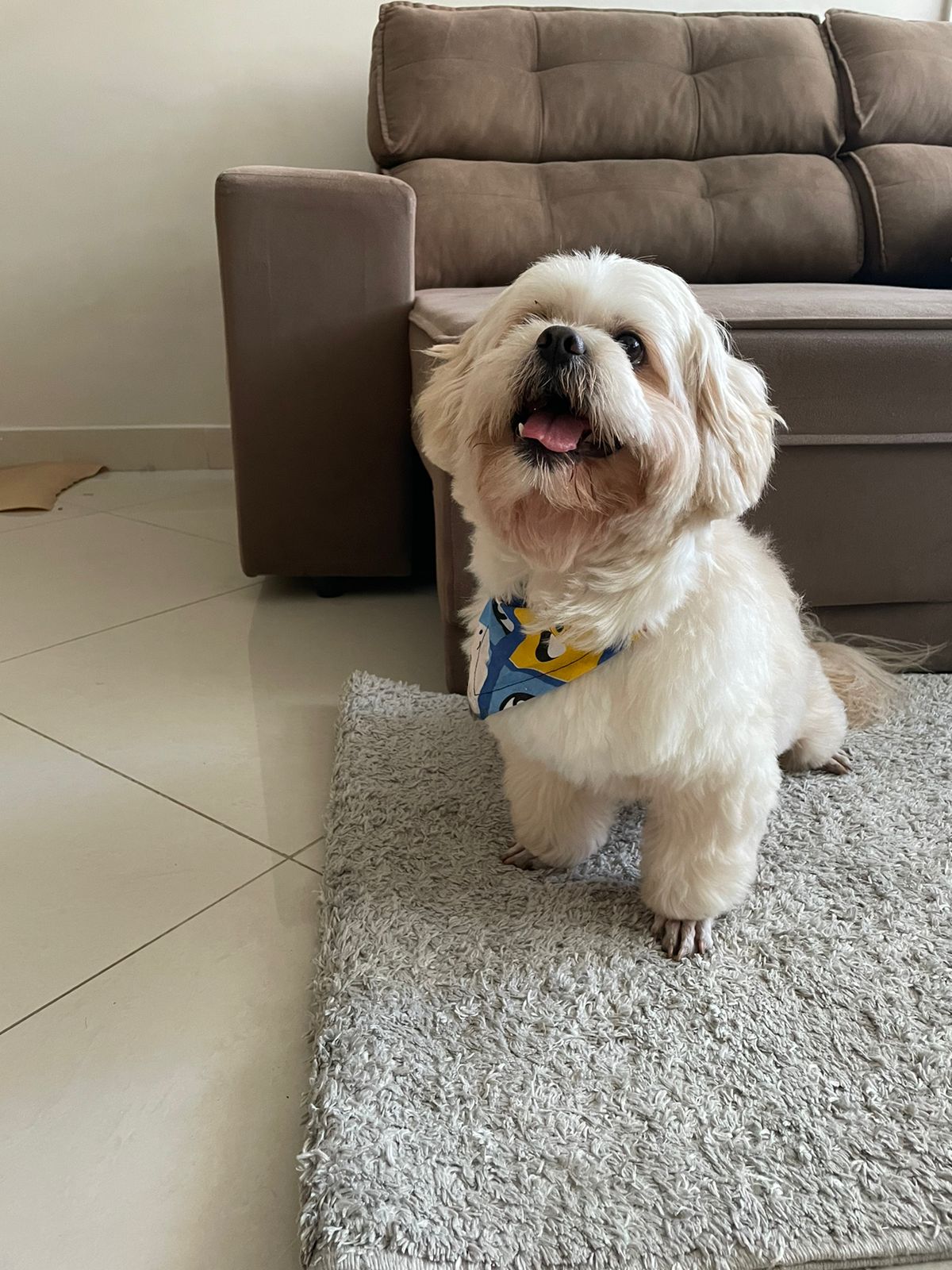 O cachorrinho estava andando pela Curitiba. Achamos que o dono estivesse acompanhando. Paramos, esperamos um pouco para ver se alguém aparecia. Pegamos no colo, esperamos mais um pouco, mas ninguém apareceu. Então trazemos ele para casa até que pudéssemos encontrar os donos.