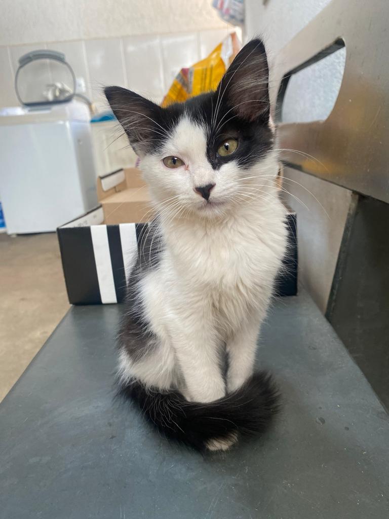 Ouvi um miado de filhote pela manhã, umas 7:30, e depois encontrei ela na garagem. Ela entrou por um buraco no portão. Ela aparenta ter uns 4 meses, é super dócil (tem zero medo de humanos), não parece ter pulgas, tem uma pelagem bem bonita e aparenta estar bem cuidada.