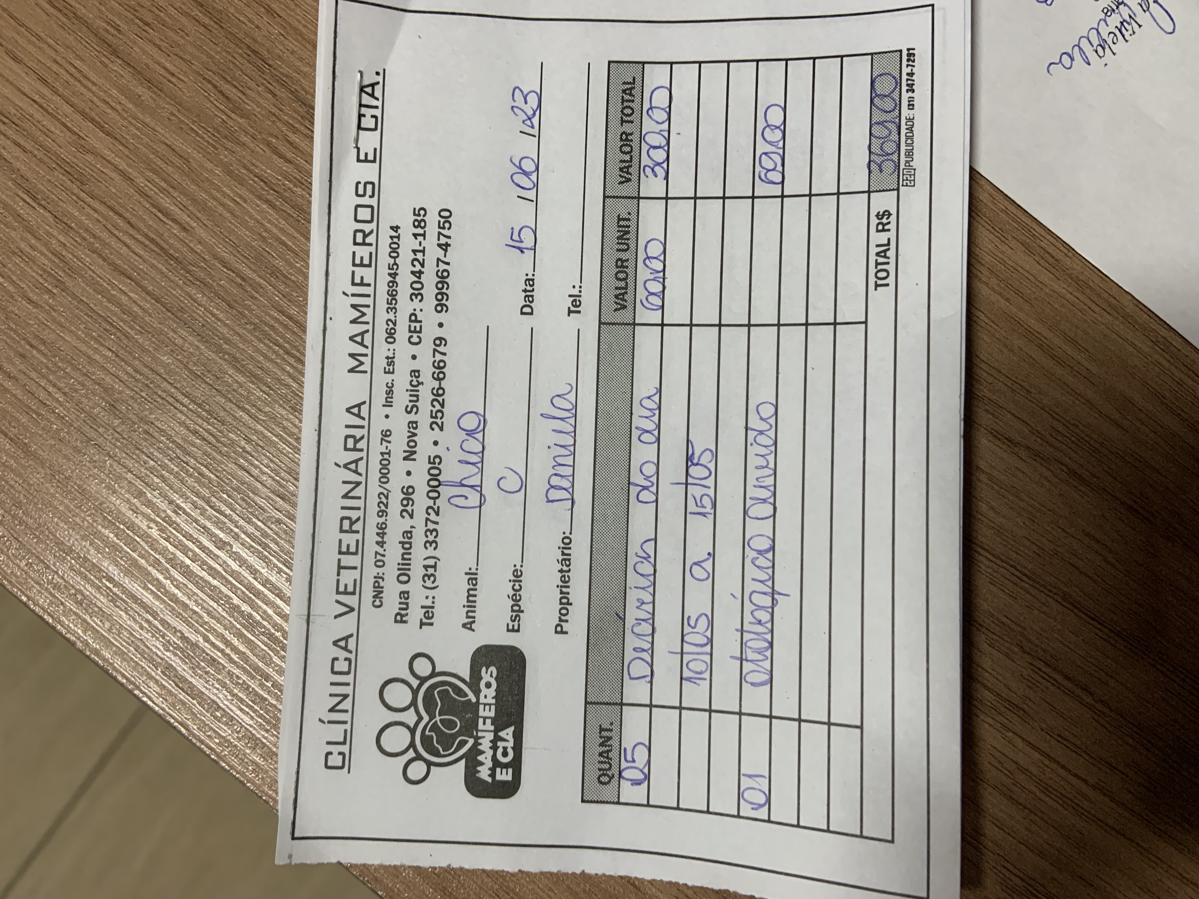 O exame de leishmaniose deu negativo e a raspagem constatou lesão na pele que está sendo tratada.