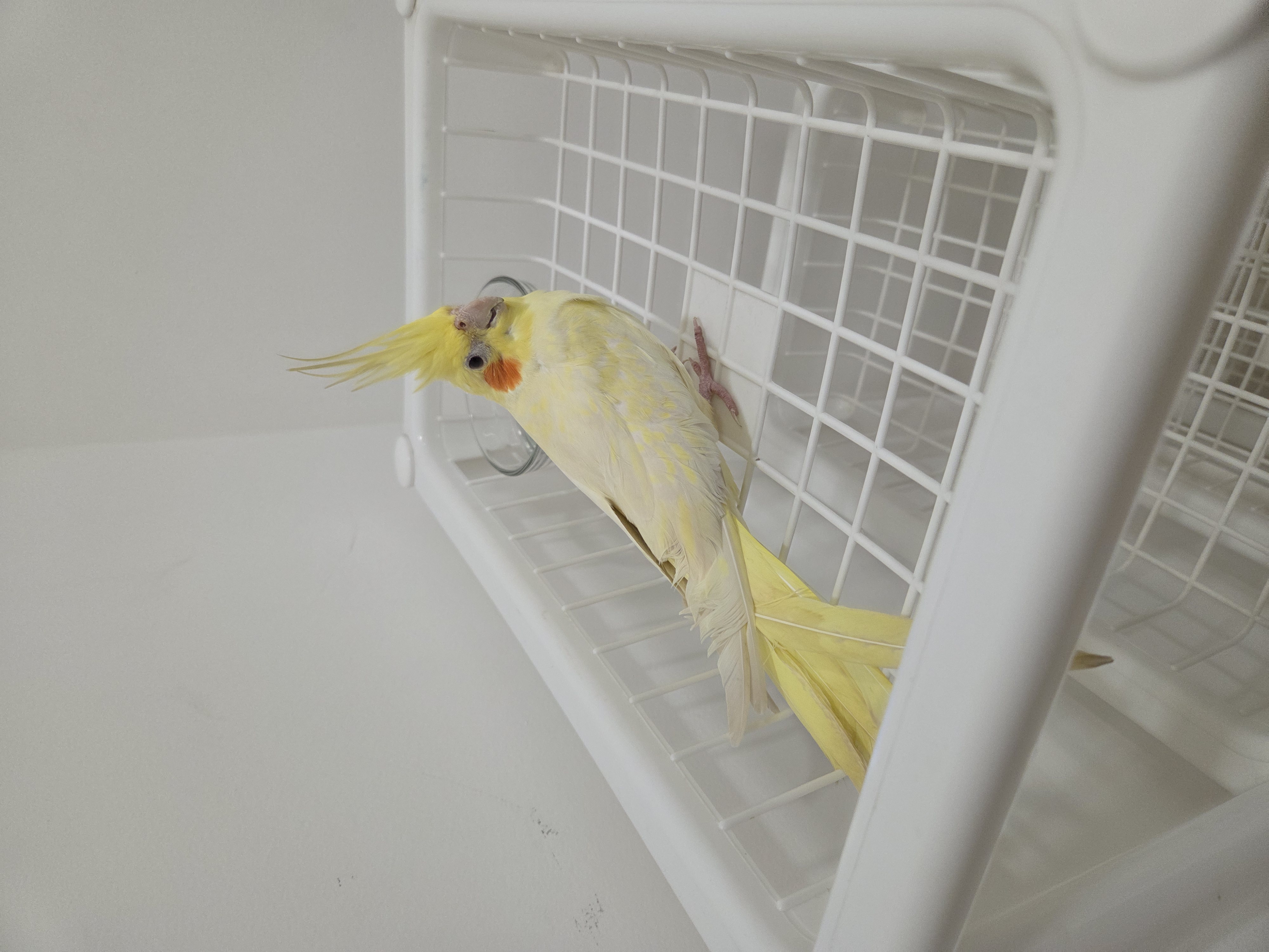 Encontrei essa calopsita na Rua Costa Rica, bairro Sion. Ela estava debilitada e não conseguia voar.
