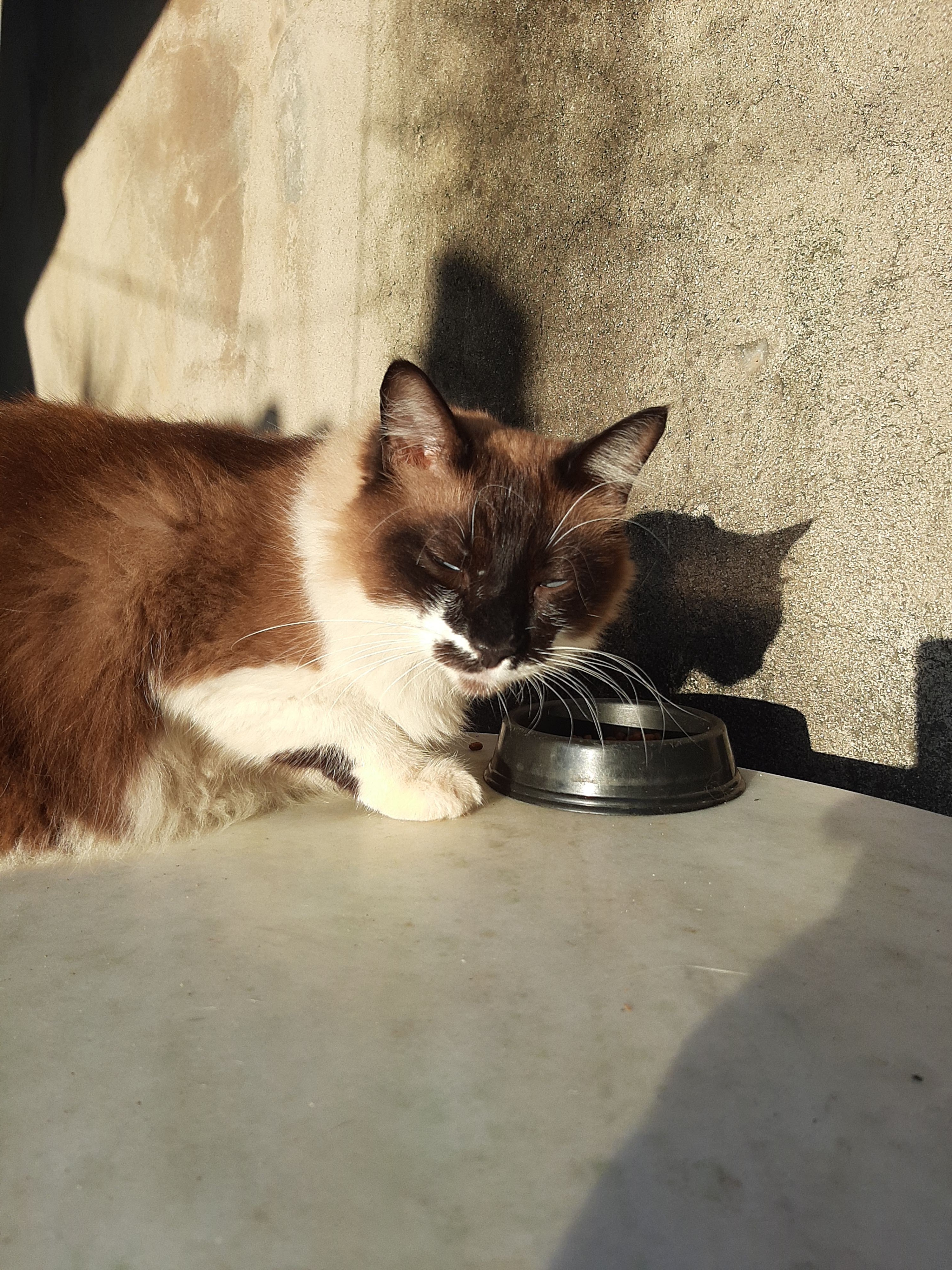 Peludo e gordinho, grandão, olhinhos azuis, muito fofo e carinhoso, ama amassar pãozinho e fingir que está dormindo, gosta de carinho, tem o miado mais doce, muito esperto, se dá bem com outros gatos