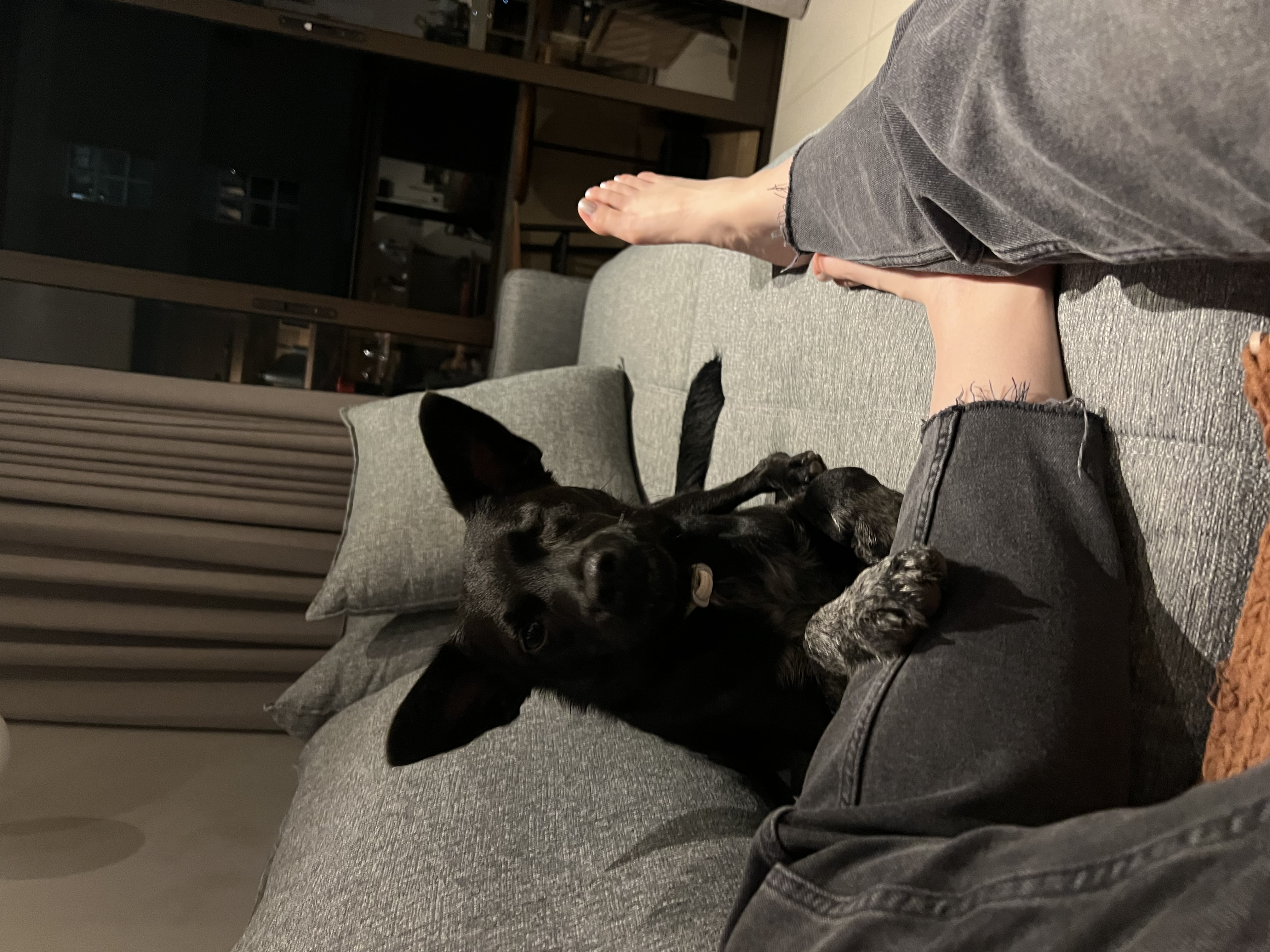Um piratinha SRD preto com patinhas dianteiras brancas/cinzas.