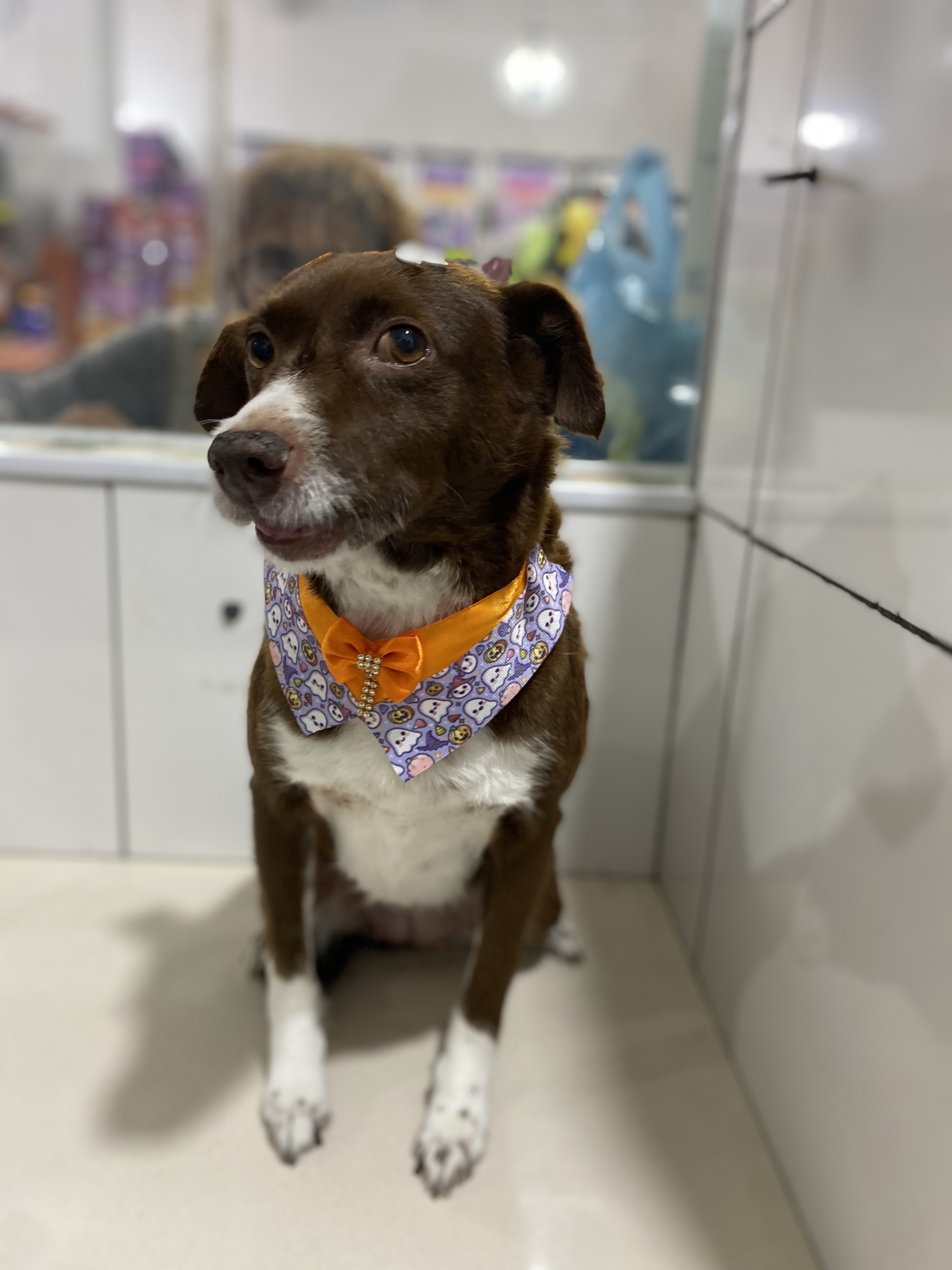 Sobre a Toddy Toddy é uma fêmea muito carinhosa, porte médio com aproximadamente 8kg. Pelagem marrom com peitoral, patas e parte do rabo com pelagem branco. Tem somente uma lado das mamas por conta de um câncer ainda em tratamento. Tem todos os dentes e está começando a ficar com pelos brancos em partes onde não tinha, por conta da idade.