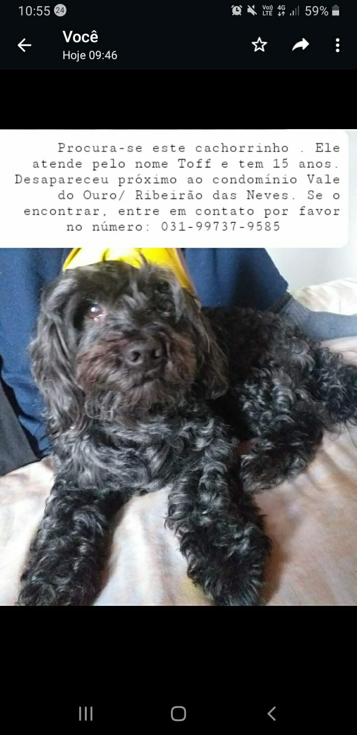 Idoso, tem 15 anos. Desapareceu próximo condomínio Vale do Ouro. Região de Ribeirão das Neves Contato 9.9737.9585